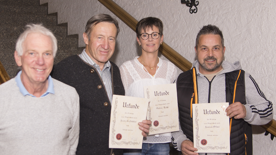 Für Ihre 25-jährige Mitgliedschaft bekam Sylvia Kaiser eine Urkunde und eine Ehrennadel überreicht. Auch Florian Ofner wurde eine Ehrung zuteil für seine 40-jährige Mitgliedschaft.